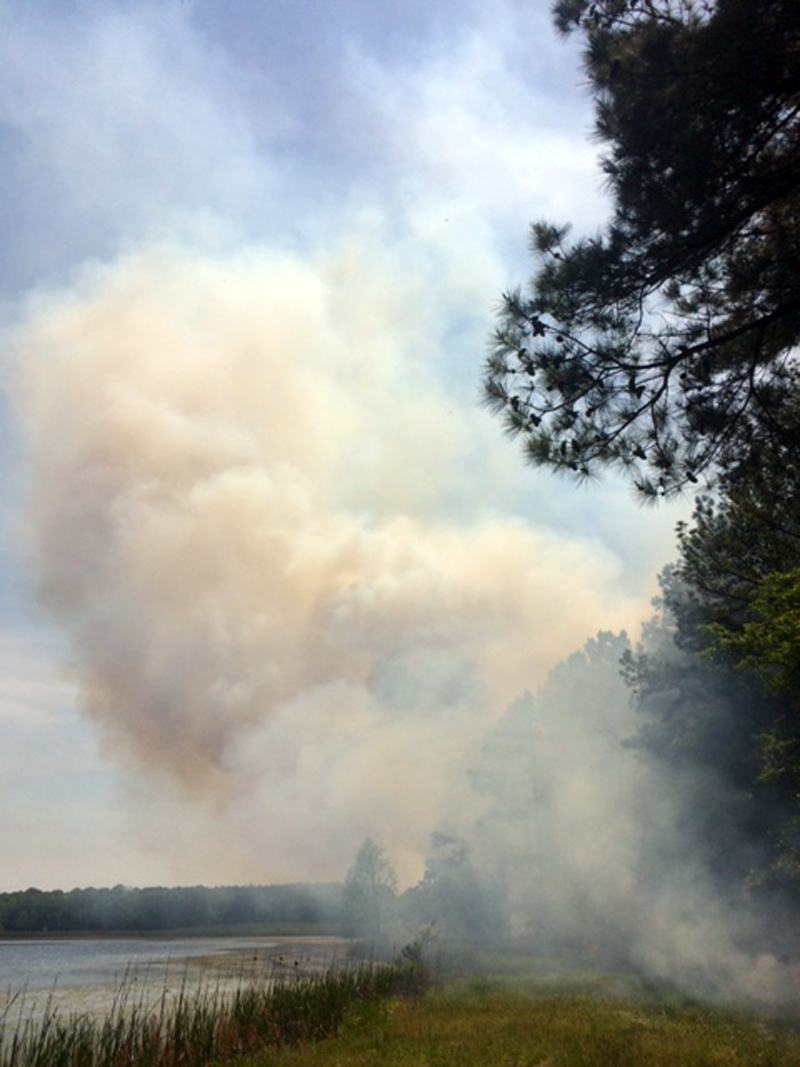 Fire reaches the end by the Lake
