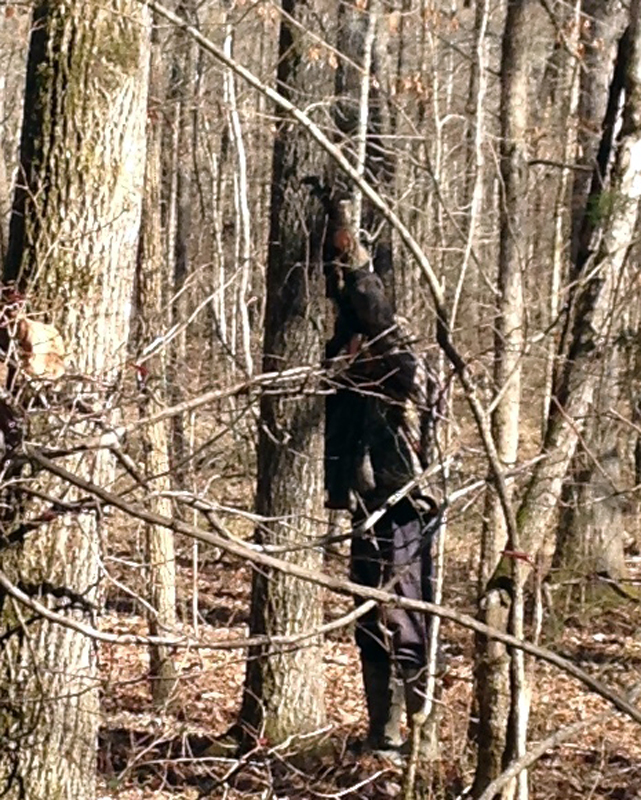 Mr. Biscuit easing down through the woods